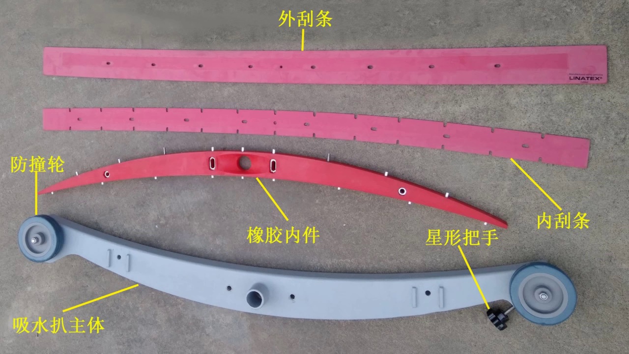 1.安裝內(nèi)刮條,對準內(nèi)刮條的孔,一一按進橡膠內(nèi)件