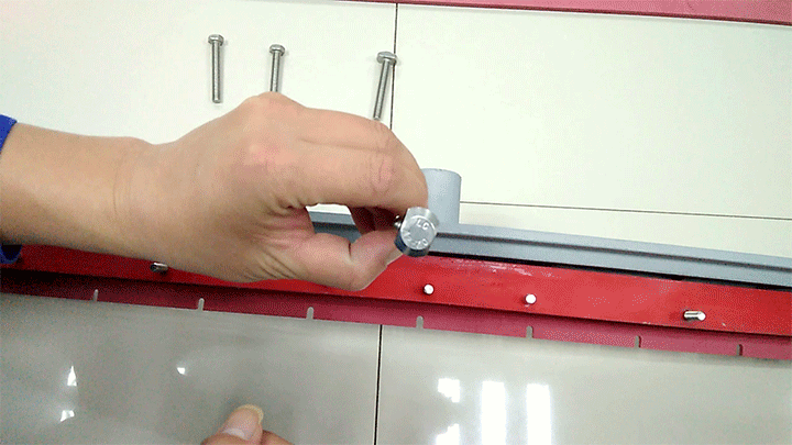 5.安裝壓條,窄邊朝自己,對齊孔,一一按進橡膠內(nèi)件